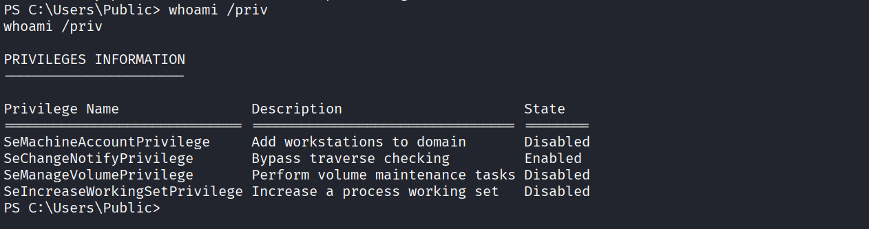 We have SeManageVolumePrivilege