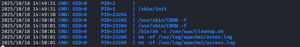 Ran pspy and we see that root user is running cleanup.sh file