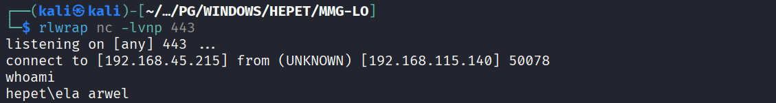 After something I received a reverse shell as ela arwel