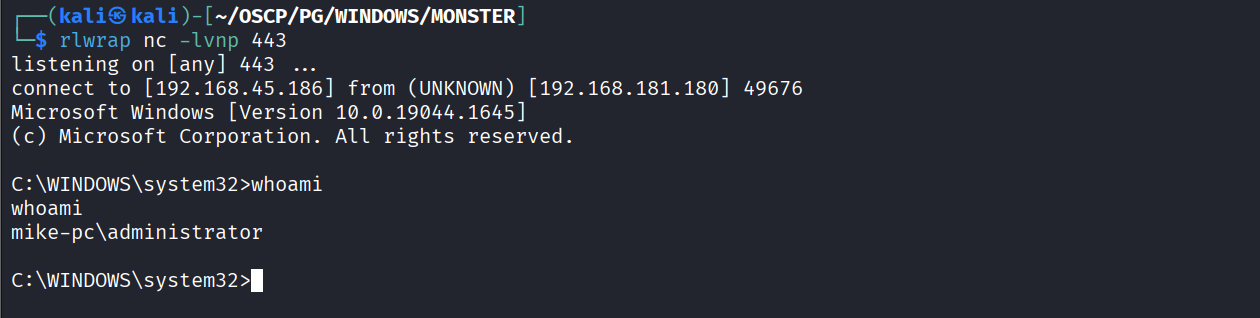 Got proof.txt (e6d73b2308958bed47e942d747b968ed)